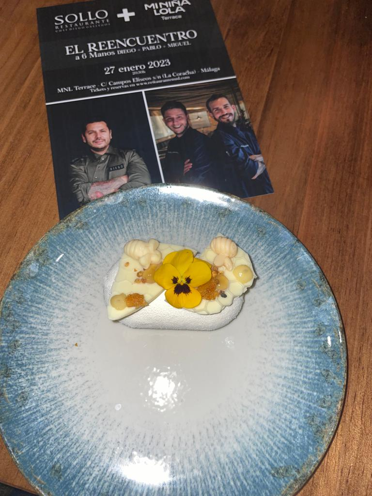 El primer aniversario del restaurante Mi Niña Lola (MNL) lo celebramos juntos, en La Coracha, a sus pies nuestra Málaga más esplendorosa si cabe iluminada. Ya auguraba una excepcional velada pues Diego Gallegos, como maestro de ceremonia, se reencontraba después de años con Pablo Rutllant y Miguel del Valle, ambos pilares fundamentales de la cocina del Sollo en el pasado para ofrecernos un menú insuperable de 8 pases.