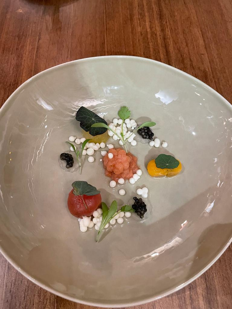Quinta y Sexta 📸-.Crema fría, tomate, caviar, parmesano (Sollo).