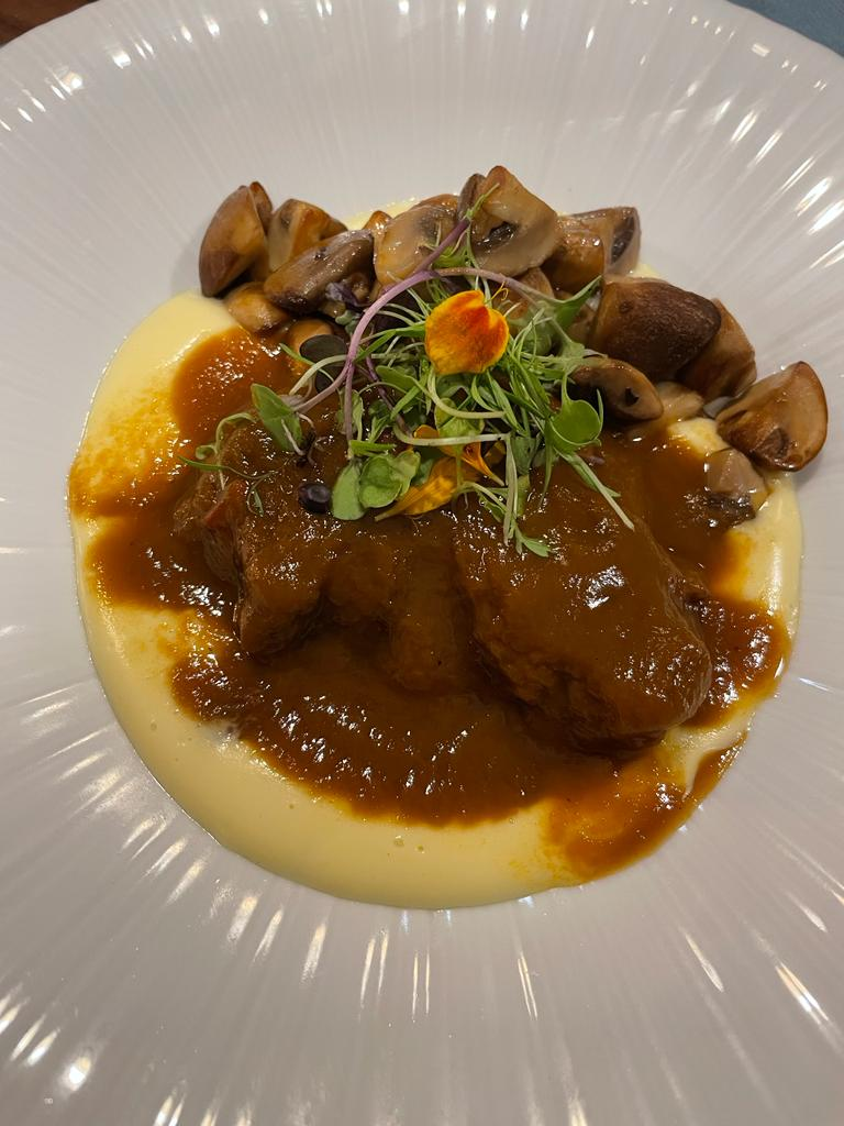 Segunda 📸-. Carrillera de ternera, parmentier de patata y champiñones (media: 12€; ración: 19€).