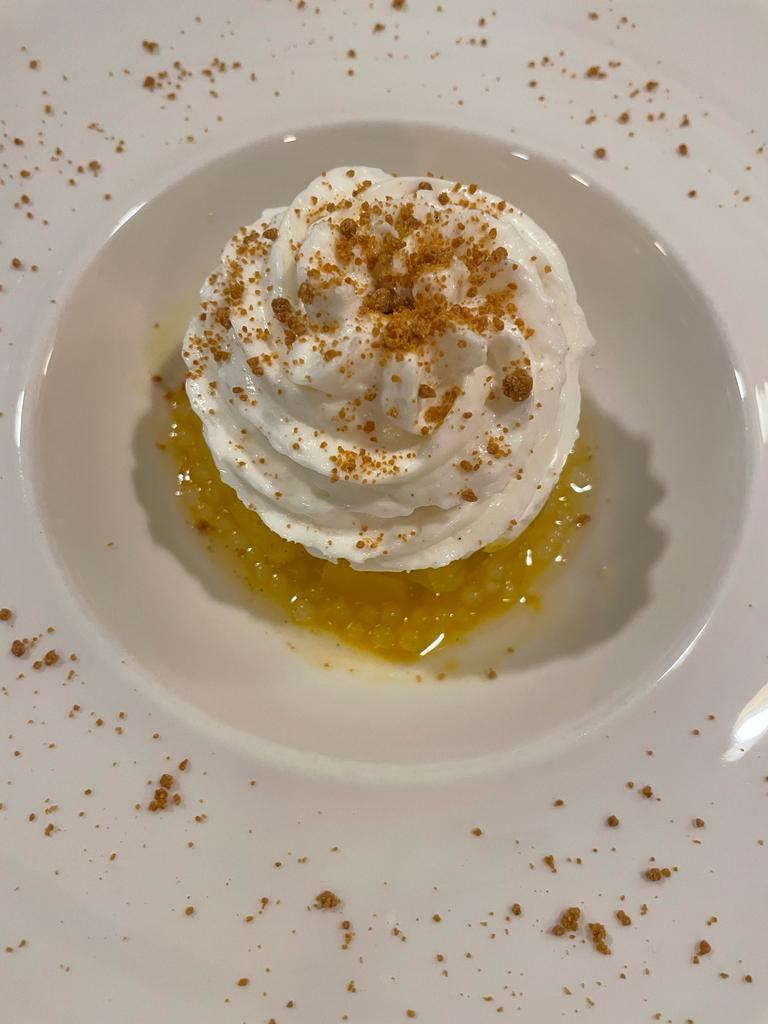 Octava 📸-. Piña asada, coco, maracuya y chocolate blanco tostado (7€).