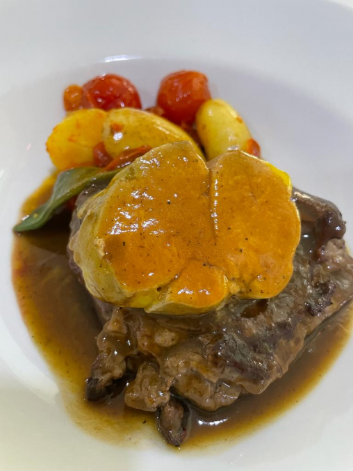 EL FOGÓN DE LA BAHÍA @elfogondelabahia en 📍C/ Fernando Camino, 15 ( en la Malagueta, Málaga). Primera 📸-. Medallón de solomillo de ternera con foie y salsa de naranja “Kumkuat”…