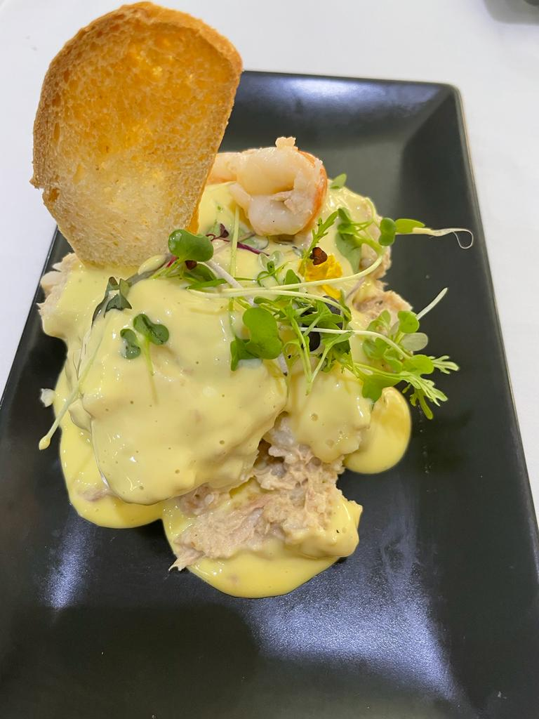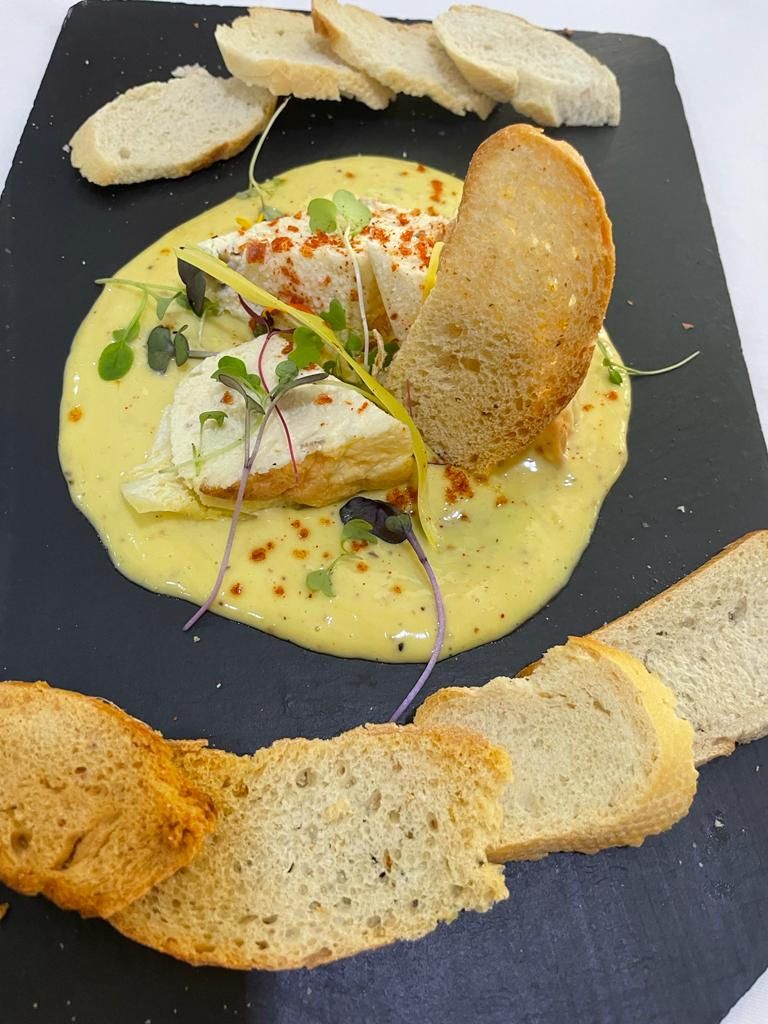 Segunda 📸-. Pastel de rape con mayonesa de almendras de Málaga (14€).