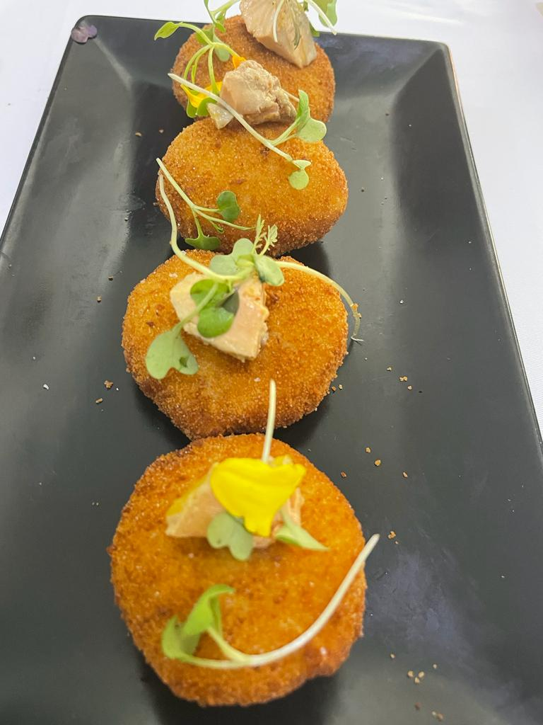 Tercera 📸-. Croquetas de manzana con “tocado foie” (media: 8€/4 uds; ración: 16€/8 uds).