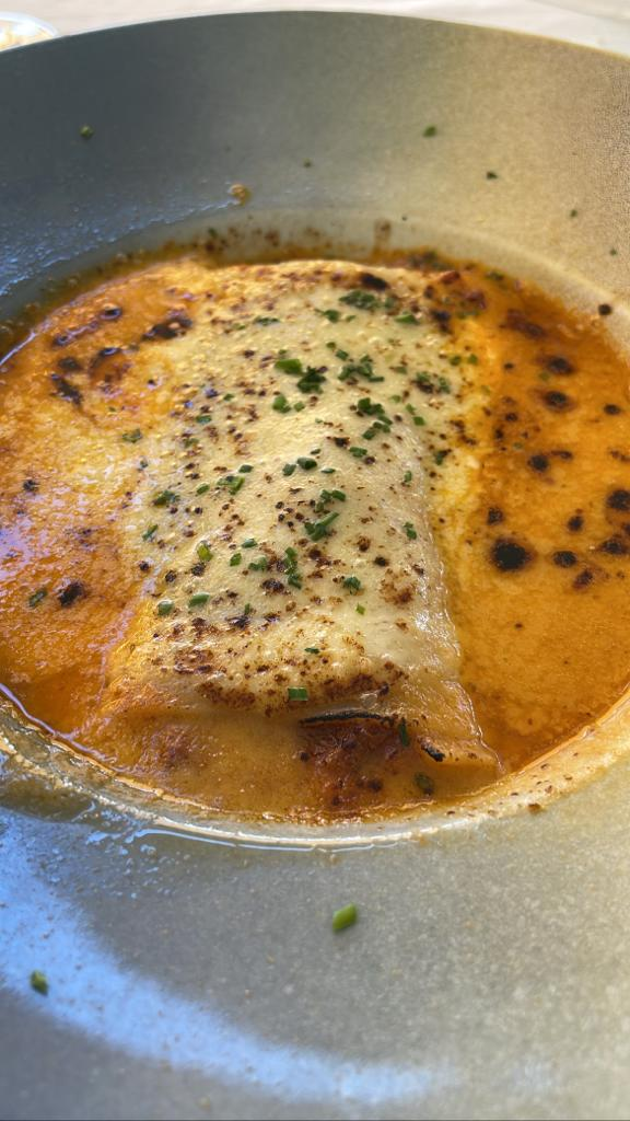 Tercera 📸-. Canelón de boloñesa de atún con bechamel de coco (14€).