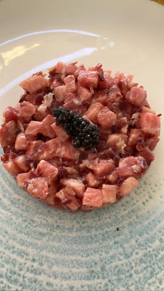 Primera 📸-. Tartar de ventresca de atún, jamón ibérico y caviar (25€).
