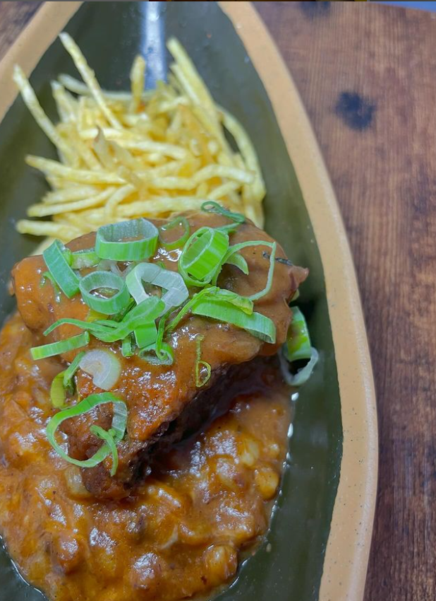 Quinta 📸-. Tapa de carrillada y crema de queso tartufata con patata paja (4,7€).