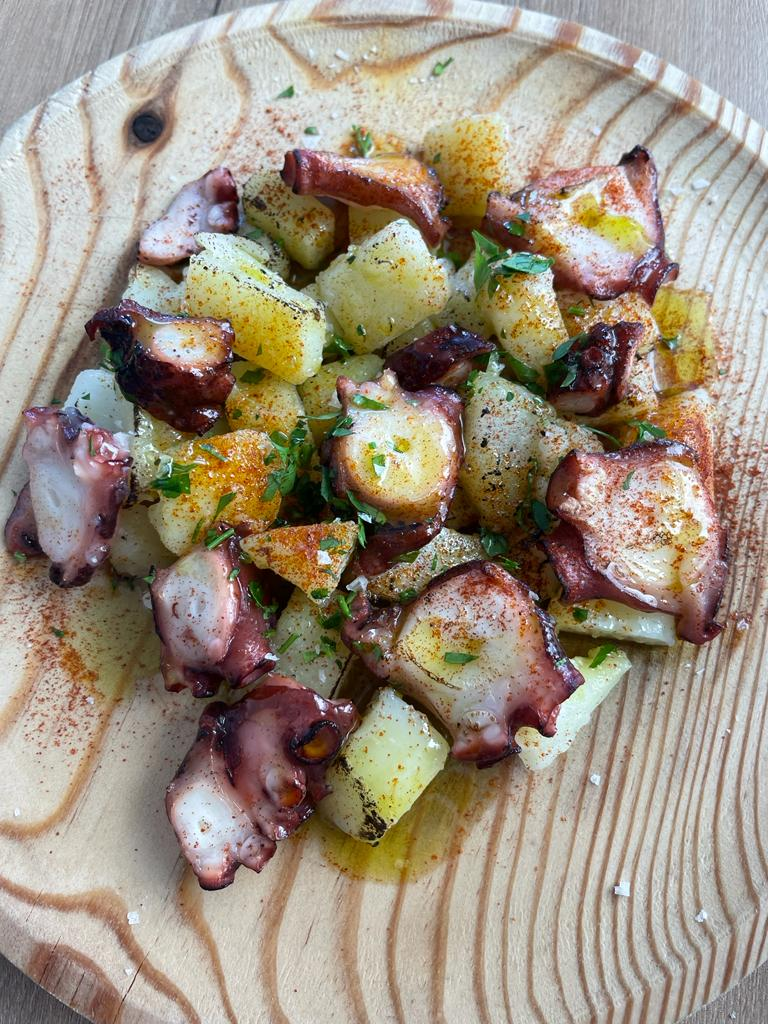 Pulpo a la gallega, patatas ahumadas y pimienton de la Vera (tapa 10€; ración 17€).