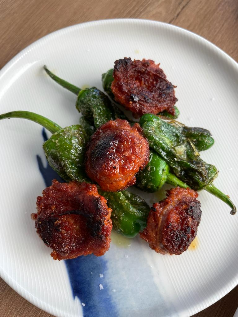 Pimentón del padrón y chorizo de Alhaurin El Grande (7€).