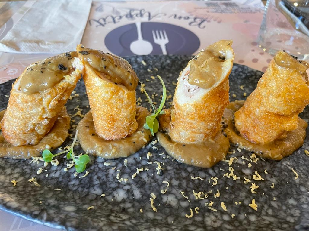 Cuarta 📸-. Canelones de pato, foie y manzana (5,00€).