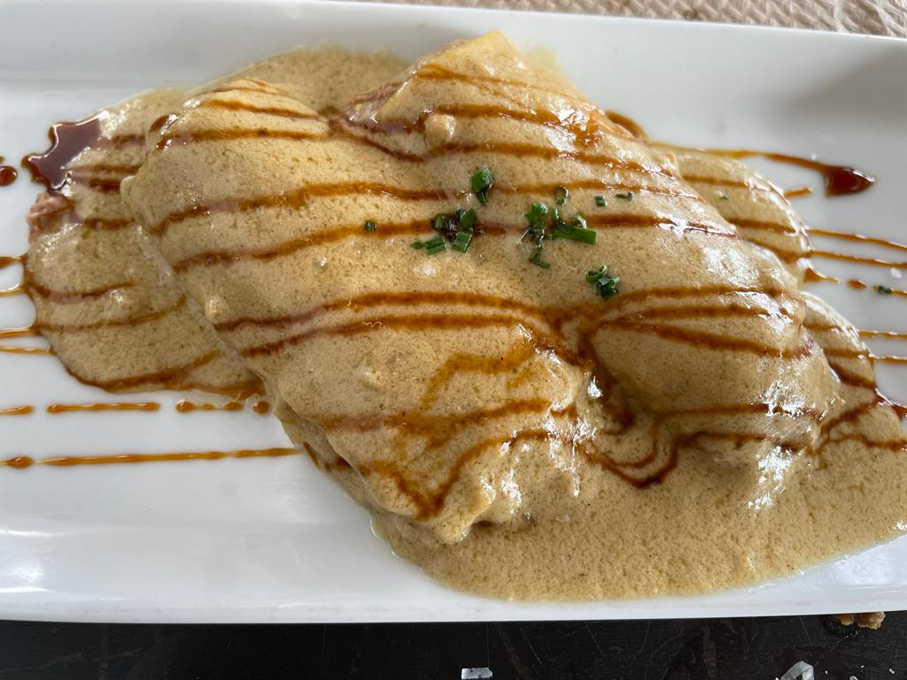 Segunda 📸-. Canelones de pato y foie con caramelo líquido (7€ media ración o 14€ ración).