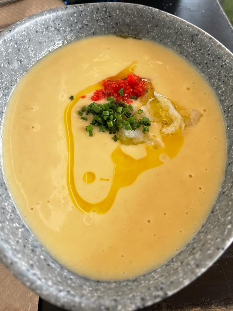 Tercera 📸-. Porra de naranja, bacalao confitado y huevas de salmón (3€ la tapa, 6€ media ración y 9€ la ración).