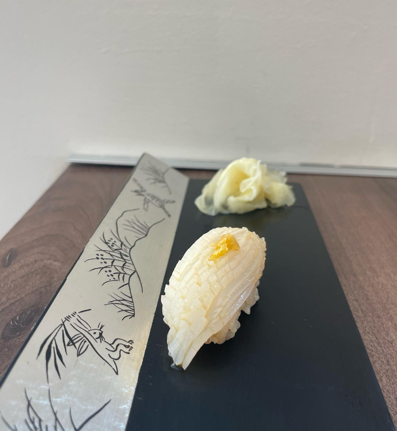 Cuarta 📸-. Nigiri de calamar caramelo piel de yuzu (6€/2p).