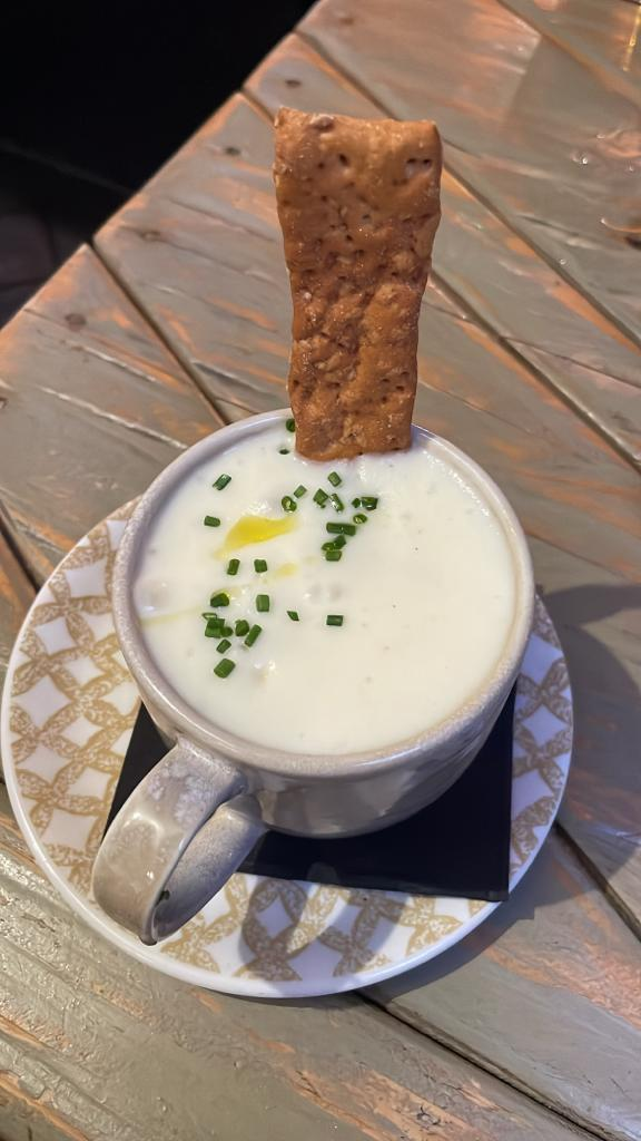 ⚠️ como MUST: las croquetas están muy cremosas predominando un sabor a mar que hace que cada bocado sea exquisito. Además, en nuestra visita, no puede faltar nunca pedir la porra acompañada de un queso maravilloso y el capuchino, plato original que resulta imposible que decepcione. También, podéis probar la mini burger de solomillo con mahonesa de trufa y queso de cabra o el pulpo gratinado.