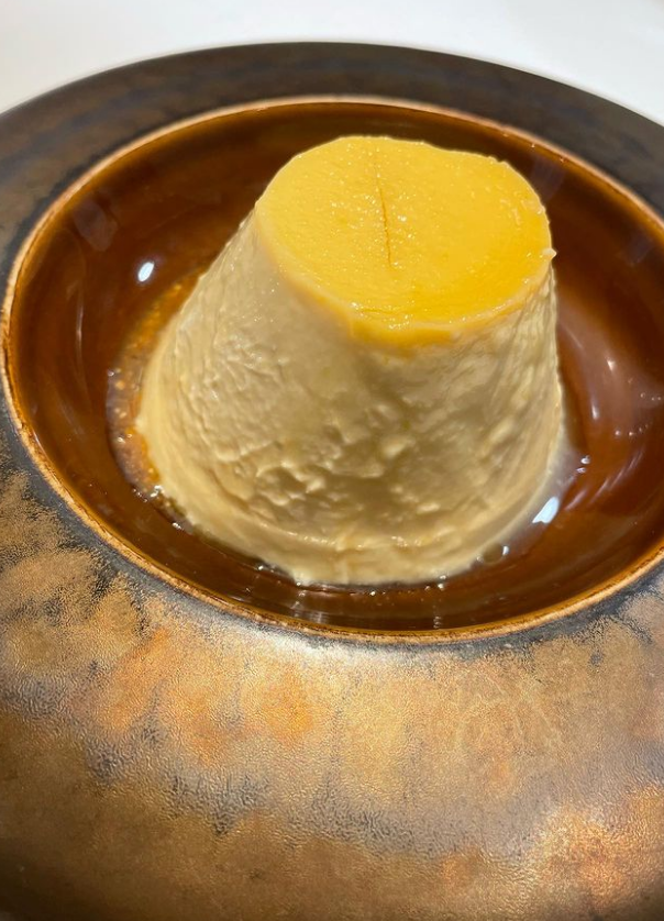 Séptima 📸-.Flan de maíz con praliné de kikos (6€).