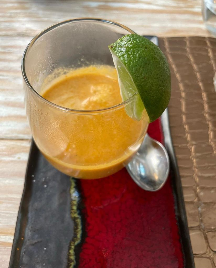 Es una fusión del auténtico caldo malagueño con toques orientales. Su sabor es quizás un poco picante para los que no estén acostumbrados.