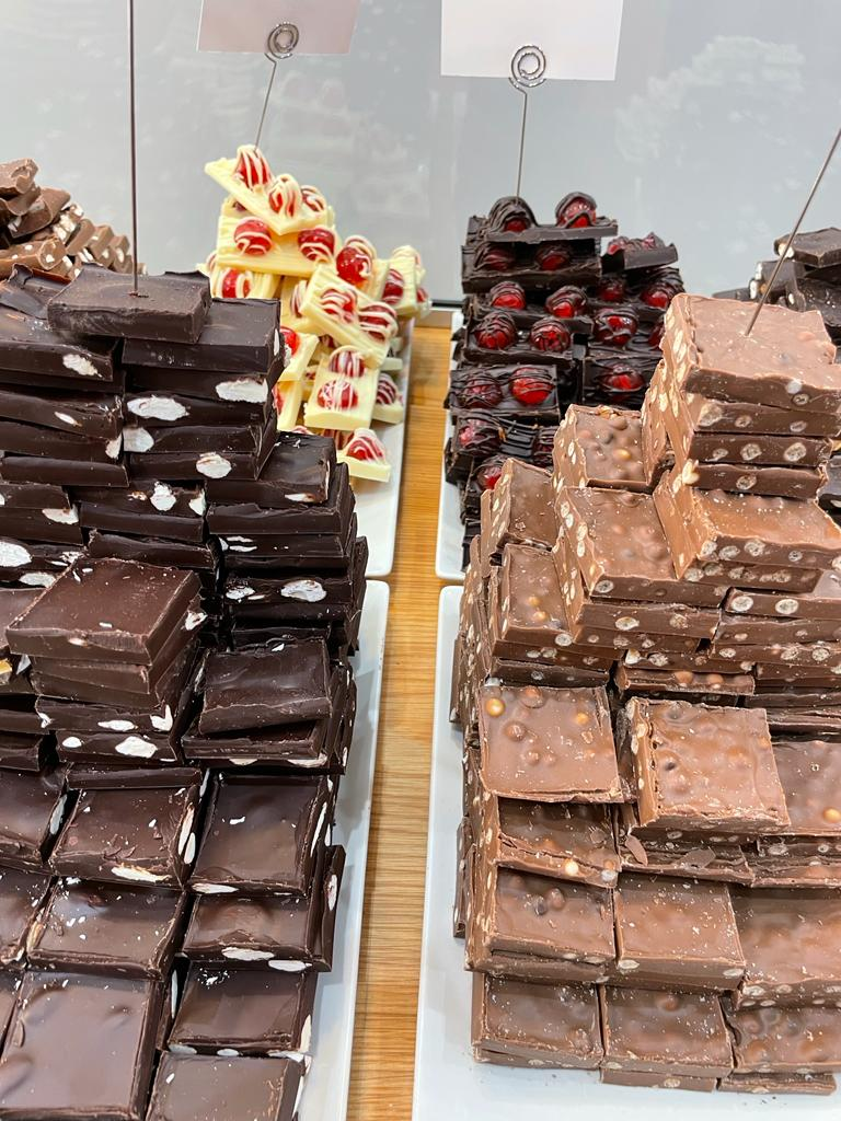 -Confituras bañadas de chocolate (hay 8 variedades): 4€/100 gr.