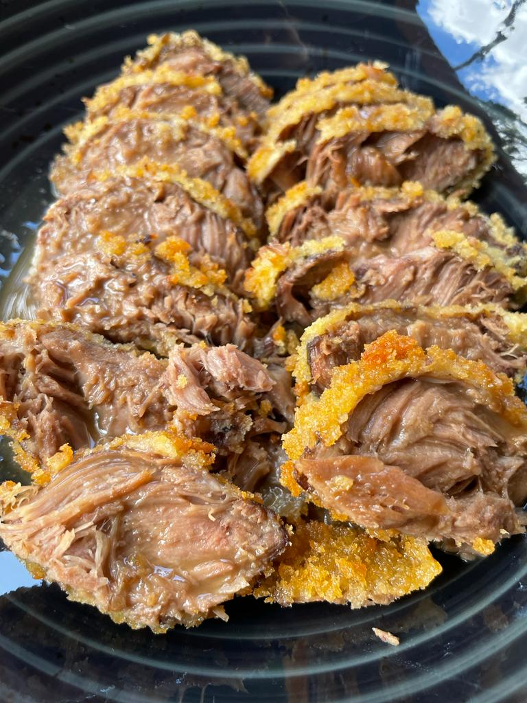 Cuarta 📸-. Tonkatsu (cerdo empanado japonés) de carrillera ibérica con salsa española (12€).
