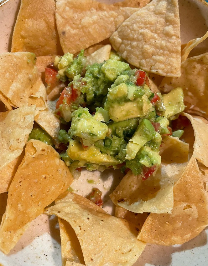 Cuarta 📸-. Guacamole con totopos: aguacate, cebolla, tomate, cilantro(8€).