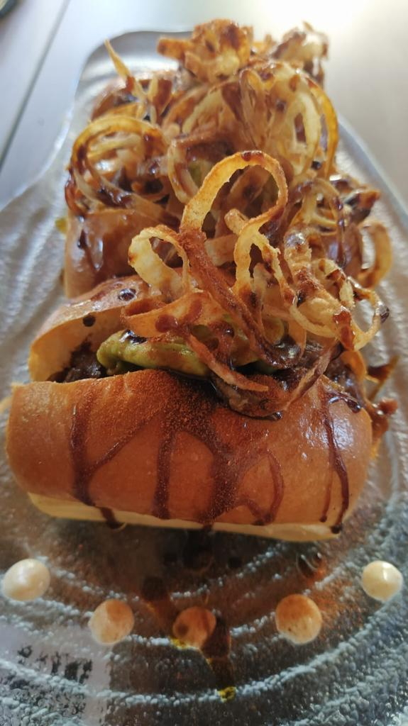 Segunda 📸-. Rock and roll: carrillada, juego de gambón y cebolla frita casera (13,5€/3 uds).