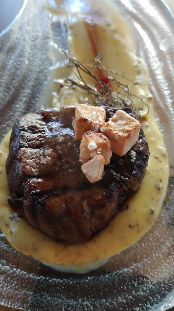 Tercera 📸-. Solomillo de ternera (200 gr) con parmentier de patata, trufa y foie (23€).