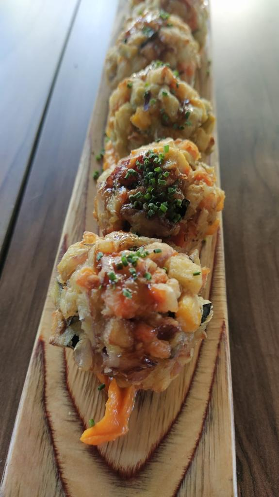 Cuarta 📸-. Rocas de verduras: aguacate, maíz, cebolleta, berenjenas, patata y teriyaki (8,9/5 uds).