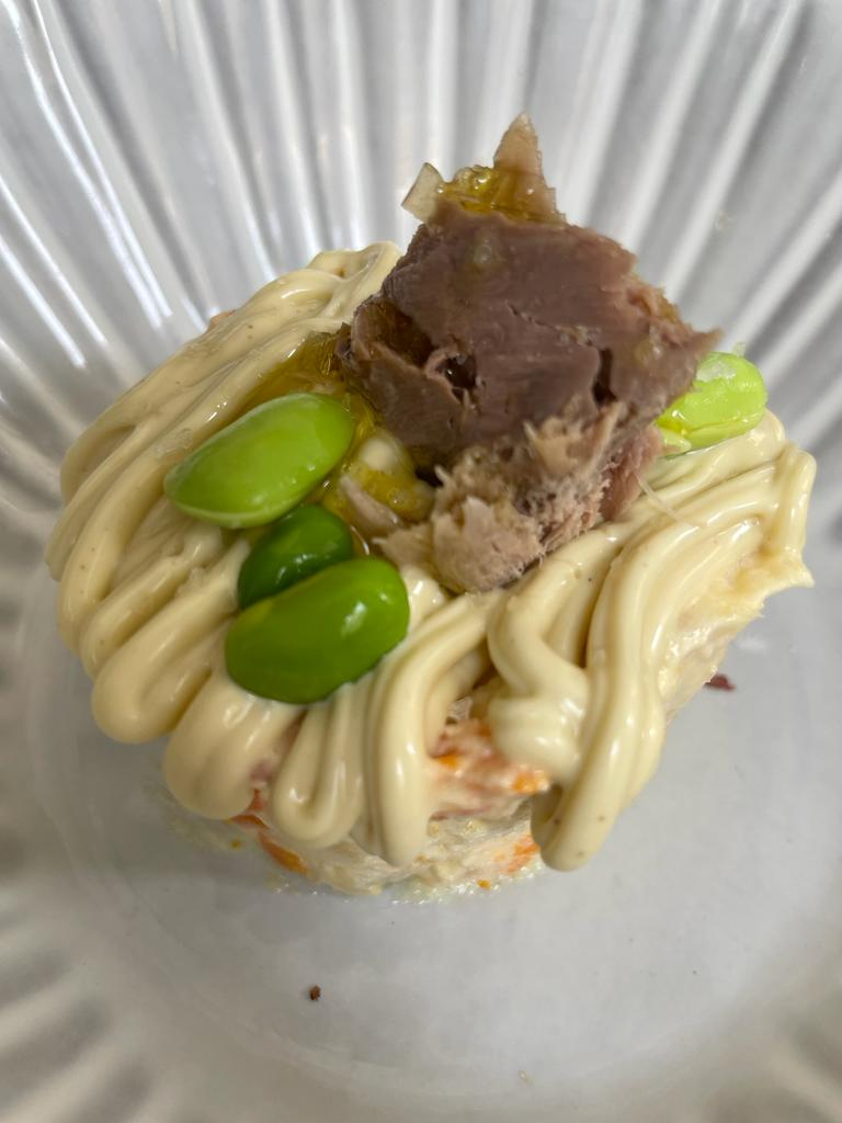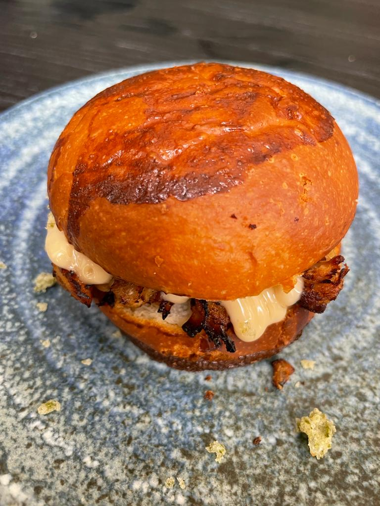 Segunda 📸-. Brioche de costilla ibérica a baja temperatura, cremoso de aguacate y lima (6,5€/ud).