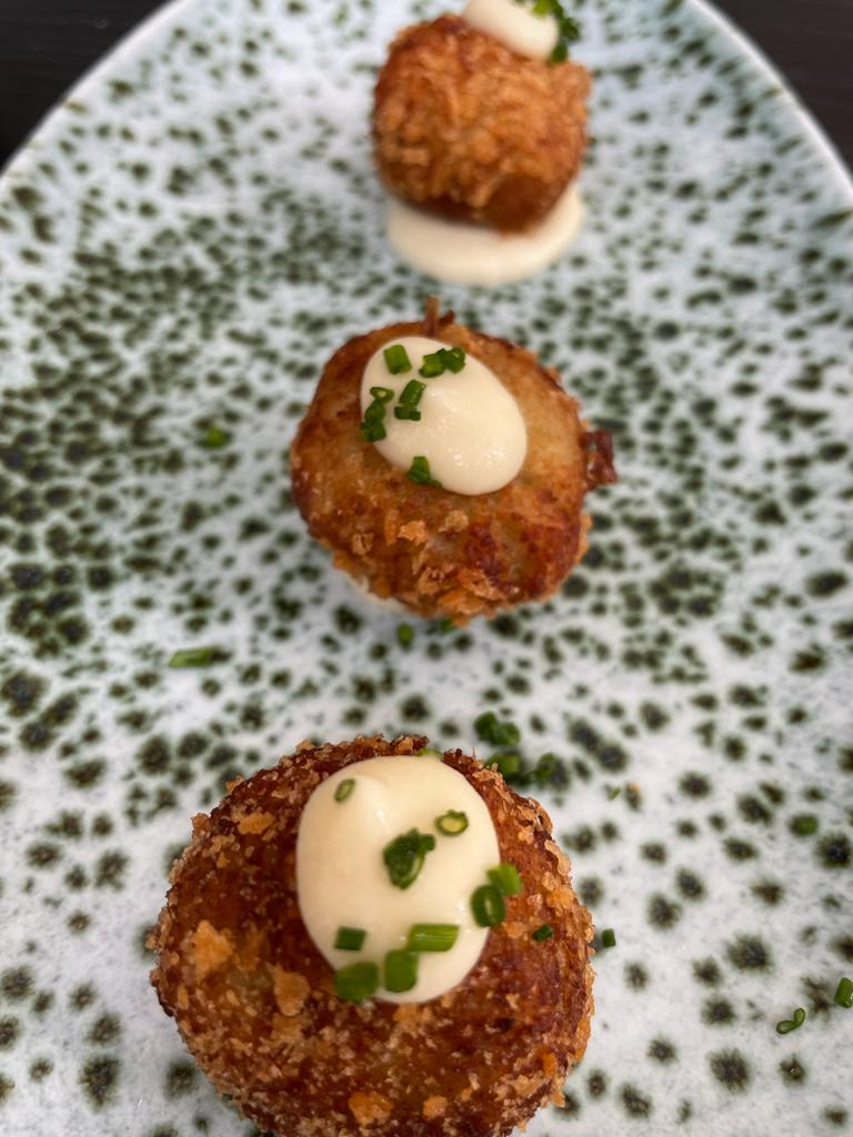 Cuarta 📸-. Croquetas de cabrales con salsa de manzana (5€/3 uds).