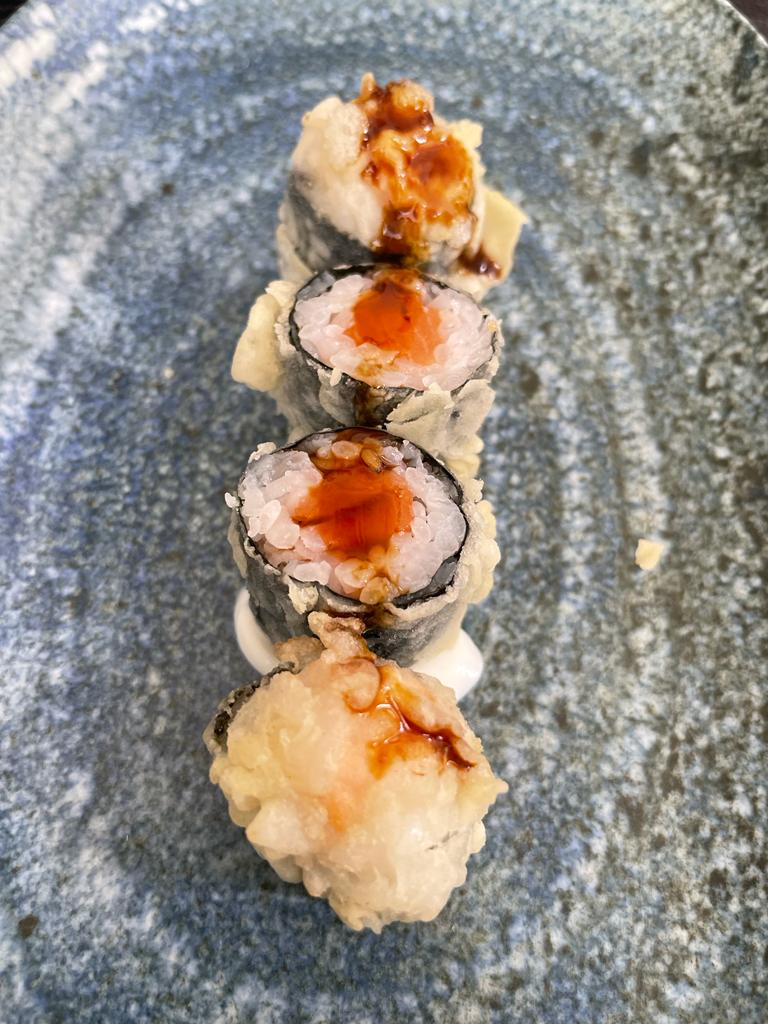 Sexta 📸-. Maki de salmón en tempura con queso crema.