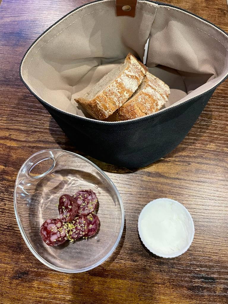 Sexta📸-. Pan de masa madre, mantequilla de Calaveruela y salchichón ibérico de Gijuelo (4,5€/pax).