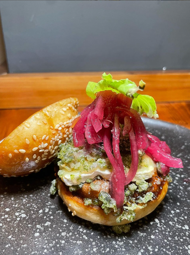 Segunda 📸-. Mini burguer de pan brioche al teriyaki con mantequilla de yema de huevo curada al PX y queso brie (6,5€).