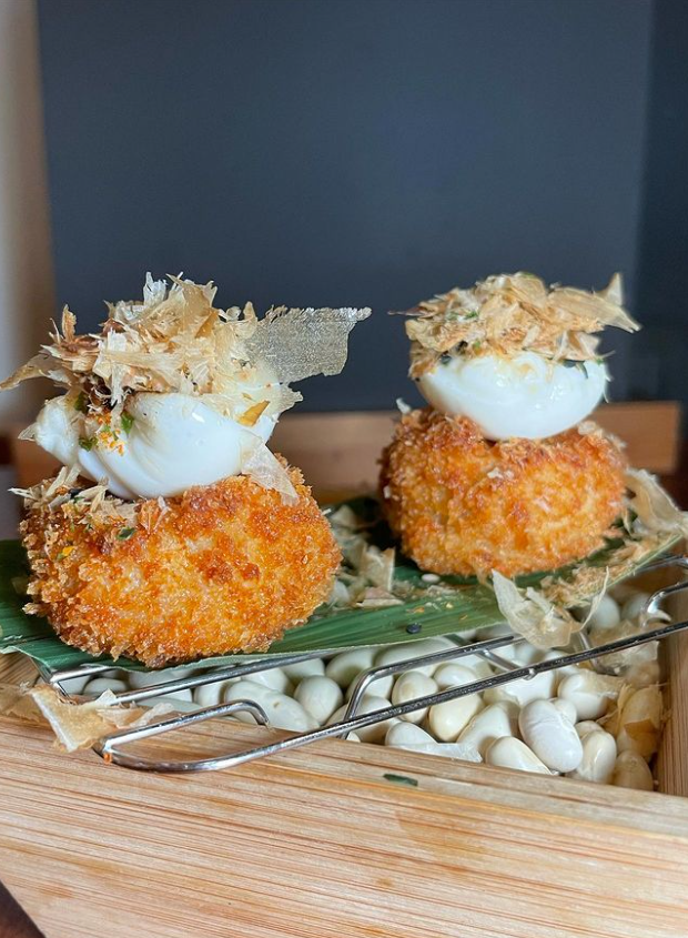 Tercera 📸-. Croqueta de ramen con huevo poché (2€/ud).